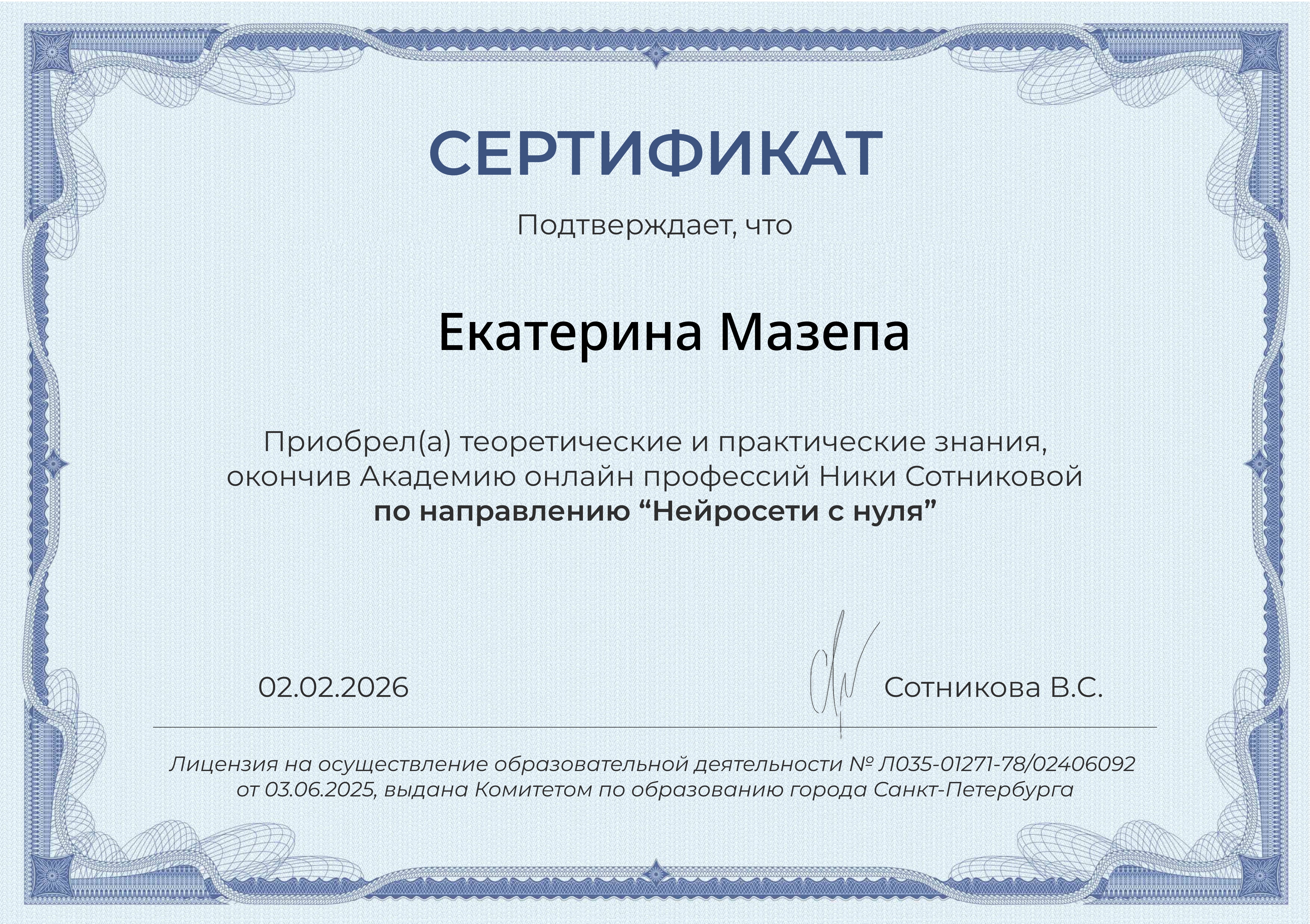 Академия онлайн-профессий Ники Сотниковой. Профессиональное владение инструментами генерации и автоматизации.